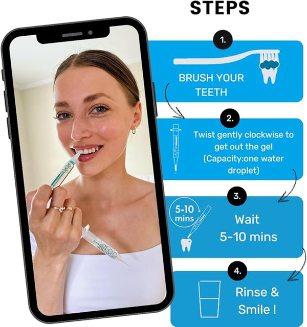 Discover the secret to maintaining sparkling and beaming smile you dreamed of! Our pen is specially crafted to nourish and strengthen your enamel, leaving your teeth feeling revitalized. Simply glide our precision formula onto your teeth, and let the enchanting process of remineralization work its magic.