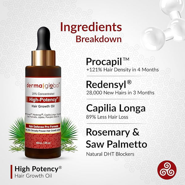 Procapil: 121% improvement in hair growth in 4 months (Sederma France, Clinical Research). Redensyl: 85% hair loss reduction in 3 months (Induchem AG). Capilia Longa: 27% thicker hair in 3 months (Vytrus Biotech, Clinical Study).
