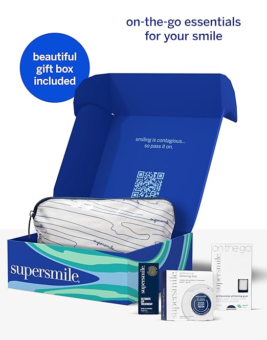 Supersmile Glow to Go Teeth Whitening Kit ? Professional Whitening Gum Dental Floss & Nourishing Lip Balm in Stylish Travel Bag ? Strengthens Enamel & Prevents Cavities