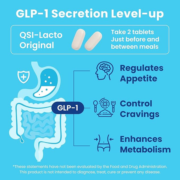 A. QSI-Lacto Original is convenient and safe to consume with no reported side effects. Unlike synthetic GLP-1 analogs, QSI-Lacto Original stimulates the secretion of natural GLP-1 in our body.