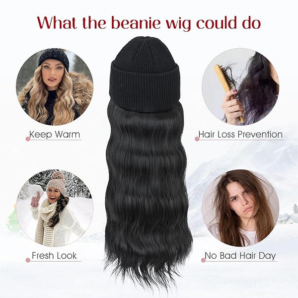 Product descriptionS-noilite Beanie with Hair for WomenNo Styling Needed?Slip on and shineS-noilite Beanie Wig Hai Extensions for WinterWhether you¡¯re sipping hot cocoa at a Christmas market, snapping family photos by...