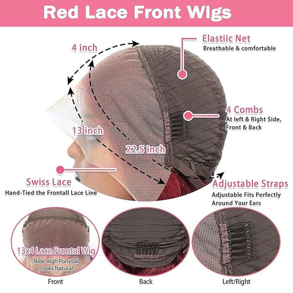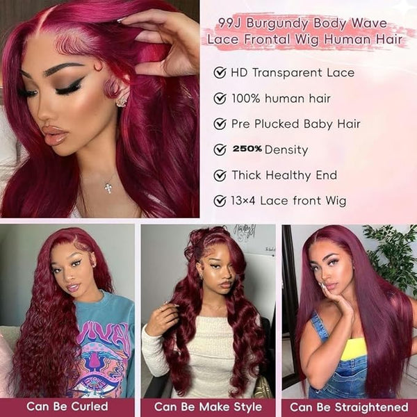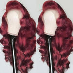 13x4 99j Burgundy Lace Front Wigs Human Hair Body Wave