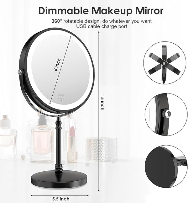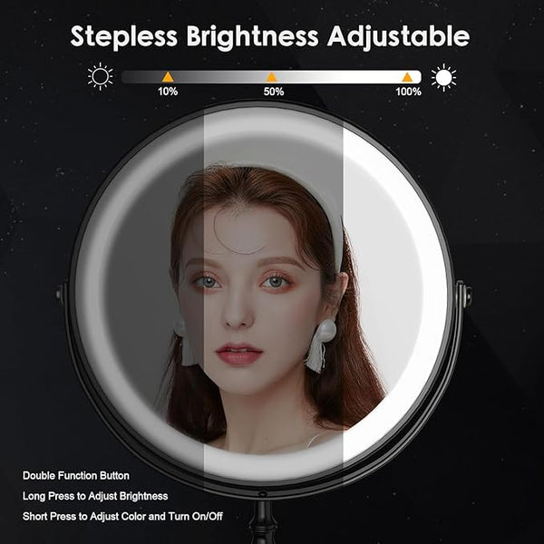 Magnifying mirror with light has 3 dimming levels: short press the sensor switch to turn on/off the light; Long press to adjust the brightness to meet all your needs in different circumstances. Makeup mirror has memory function, which will remember the last brightness you need.