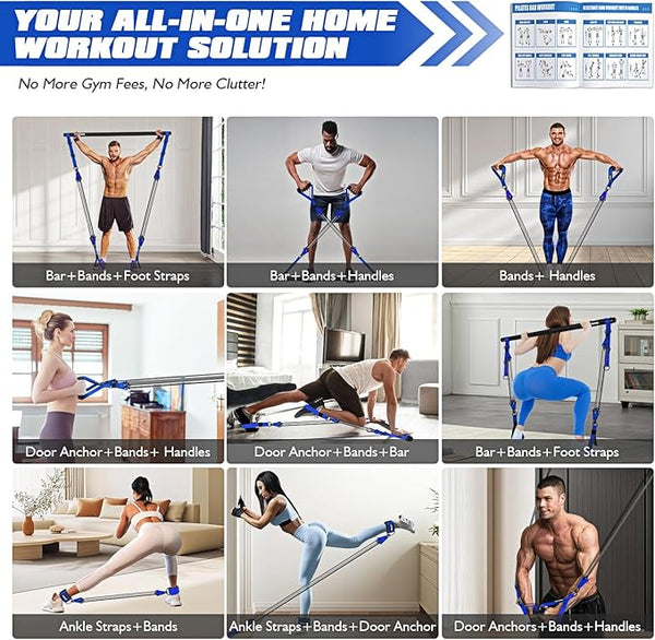 Portable Gym & Pilates Bar Kit with Resistance Bands:Full-Body Home Workout