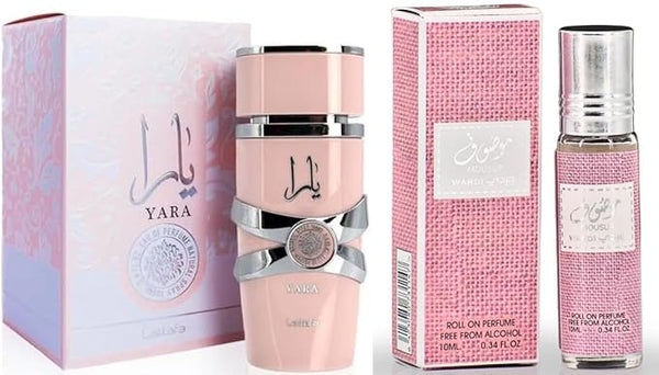 Yara for Women Eau de Parfum Spray-100ML (3.4OZ) + Mousuf Wardi Roll-On Perfume Oil - CPO 10ML (0.34OZ)
