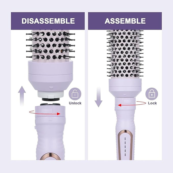 Important Notice: This detachable curling brush features a dual-locking mechanism. For your safety, ensure the brush head is securely locked in place before use.