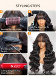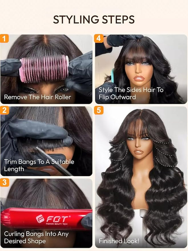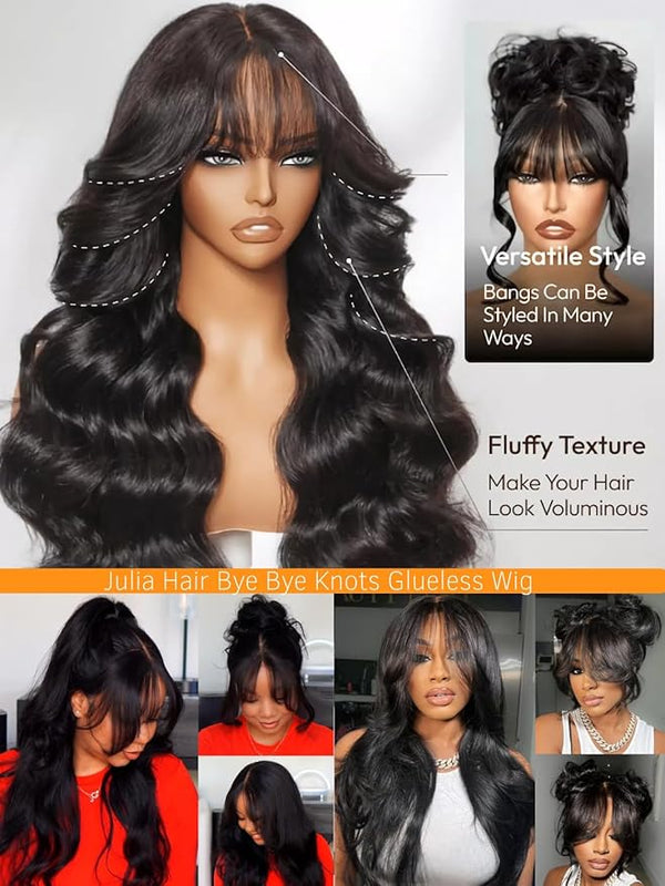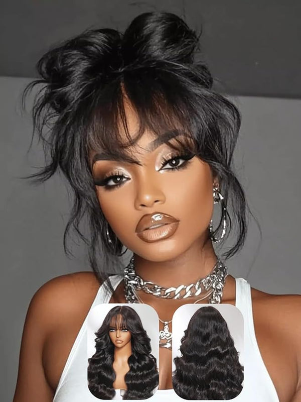 Loose Body Wave Pre Everything Wigs with Curtain Bangs