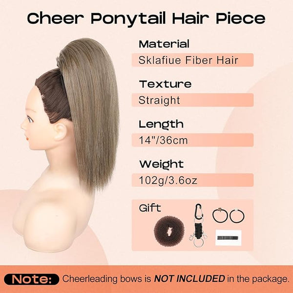 Product descriptionblonde cheer ponytail hair pieceUse a hair donut(package included) if your child¡¯s hair is super thin/shortNo need to use a hair donut, if your child has long or thick...