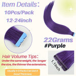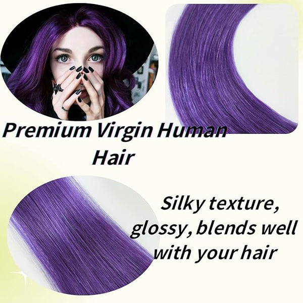 Purple Mini Human Hair Extensions 10Pcs Per Pack 12 to 24 Inch (13 to 24 Grams)