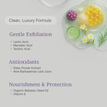 This exfoliating AHA peel serum unclogs pores, refines skin texture, and boosts cell renewal. With consistent use, it reduces fine lines and brightens dull skin, revealing a smoother, radiant, more even-toned skin.