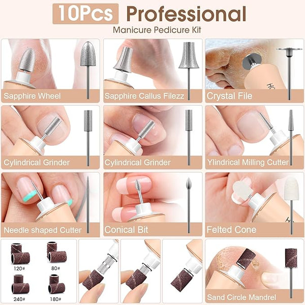 Professional Manicure Pedicure Kit with 360¡Æ LED Light&10 Speeds&Memory Mode with Case Cordless Electric Nail Drill Pedicure Tools for feetHand Foot Care Nail File for Thick Nail Toenail Cu