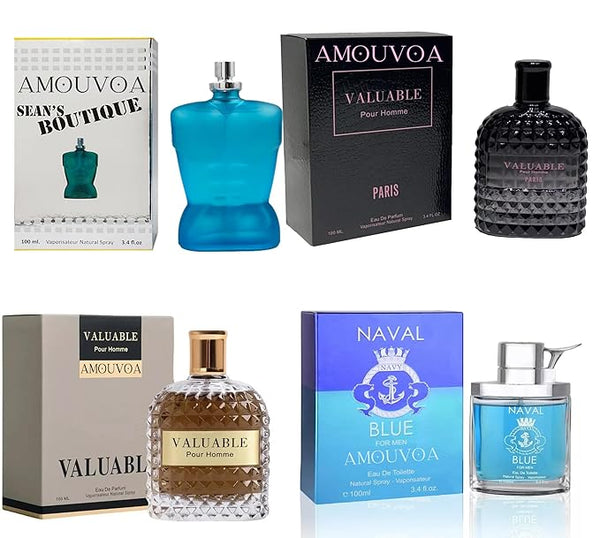 4-Piece Cologne for Men Includes Valuable Paris/Valuable Gold/Seans Boutique/Naval Blue of Woody, Spicy, Citrus & Aromatic eau de parfum for Men