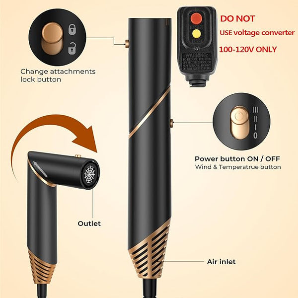Hair dryer brush can only be used in an environment with a voltage of 100-120V. It cannot be used in Europe; otherwise, the product will be damaged