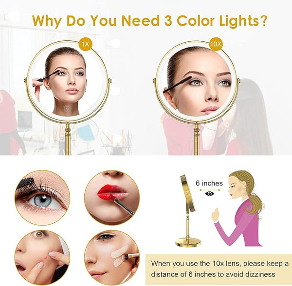 Product descriptionThree Lighting Modes Vanity Mirror for MakeupWhite Light: For morning office work makeupNatural Light: For noon daylight dating makeupWarm Light: For evening party and club makeupUsage: Tap button to...