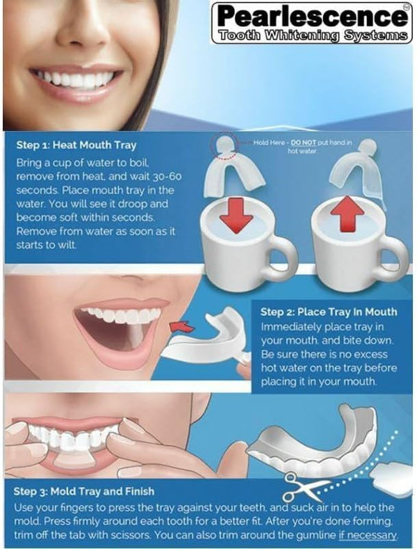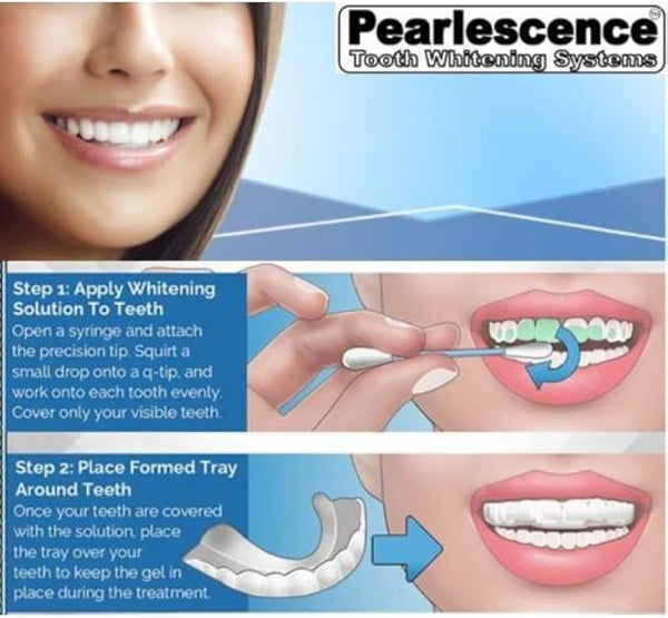 Pearlescence Teeth Whitening System 16% Carbamide Peroxide Gel Kit 2 x 10ml Whitening Gel + 3 Boil and Bite Trays + Paper Shade Guide and Instruction.