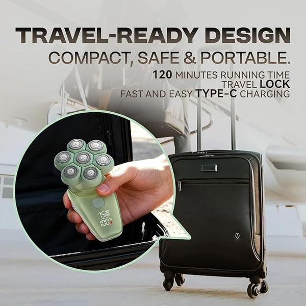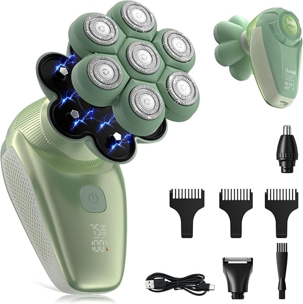 This electric razor is perfect for bald men. The 7D floating head delivers a clean and comfortable scalp shave, while the trimmer handles longer or thick hair. The nose trimmer ensures neat and precise grooming.