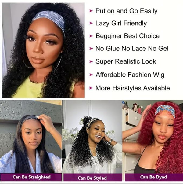 Glueless None Lace Front Wig Headband Wig Human Hair Deep Wave