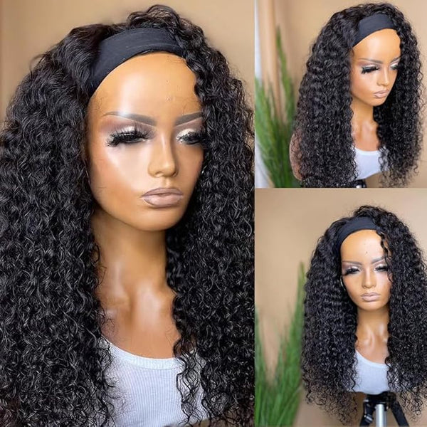 Deep Wave Headband Wigs Glueless None Lace Front Wig
