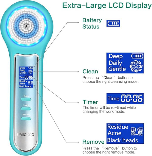 Face Scrubber ExfoliatorFacial Cleansing Brush Waterproof with LCD ScreenBlackhead Remover Vacuum with 5 Brush HeadsFace Spin Brush for Exfoliating (Blue-Blue)