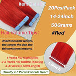 Red Tape in Hair Extensions Human Hair 20Pcs Per Pack 50Grams 14 to 24Inch