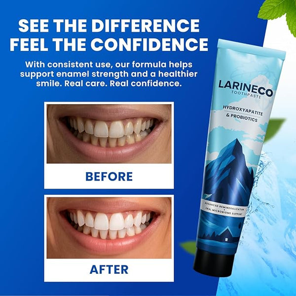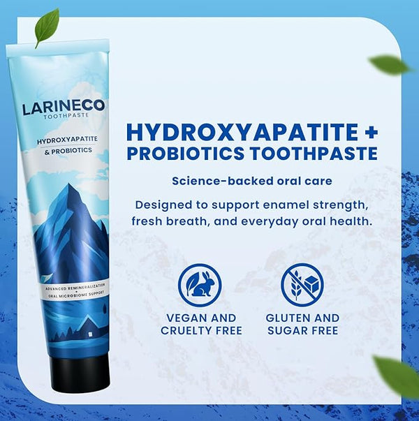 Larineco is crafted with natural ingredients, including hydroxyapatite to support strong enamel, probiotics to help maintain a balanced oral environment. Unlike many toothpastes, it contains no sulfates or artificial flavors.