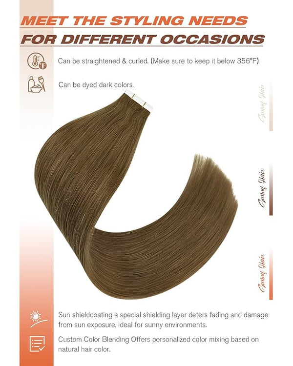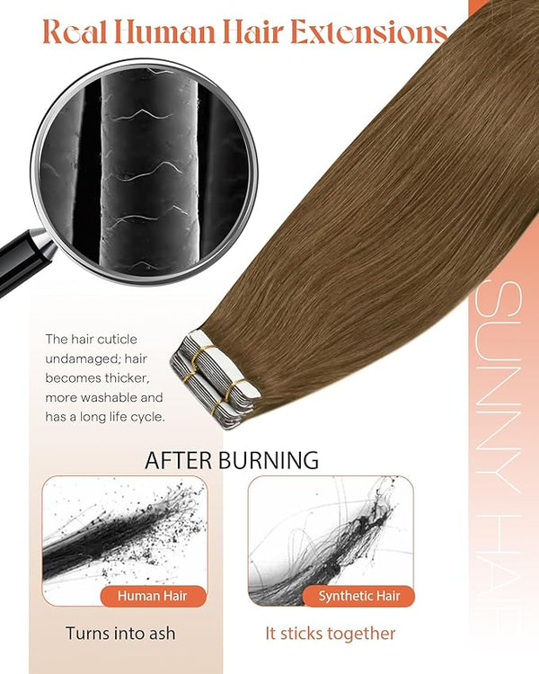 Product descriptionSunny Hair Light Ash Brown Tape in Hair Extensionstape in real human hair extensionsLearn More Product DetailsReal Human Hair & Double Sided America White TapeLightweight & Invisible & ComfortableTurn...
