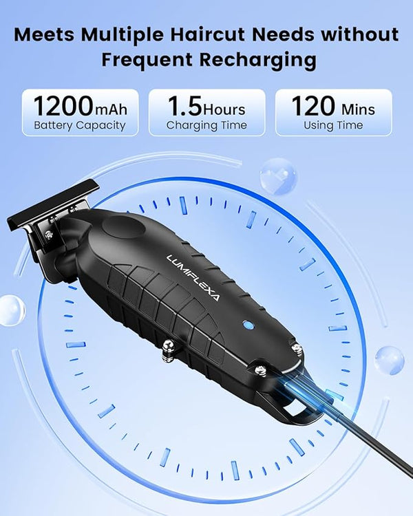The 1200mAh rechargeable battery runs up to 120 minutes per charge and fully recharges in just 1.5 hours. It¡¯s ideal for travel, daily grooming, or professional barbers who need reliable cordless performance.