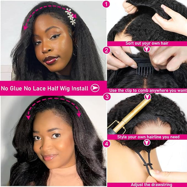 Kinky Straight 3 in 1 Half Wig Human Hair For Daily Life