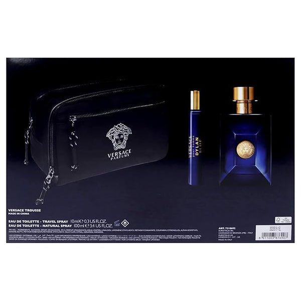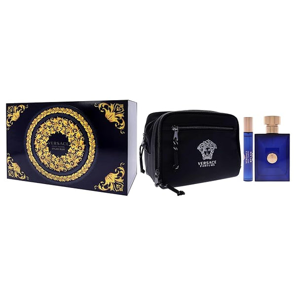 Dylan Blue by Versace for Men - 3 Pc Gift Set 3.4oz EDT Spray, 10ml EDT Spray, Blue Pouch