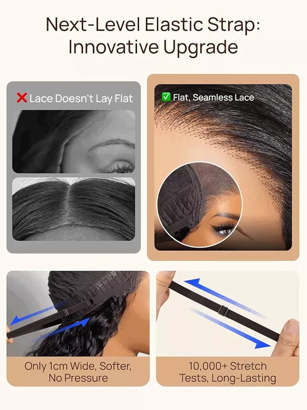 Glueless Yaki Straight Pre Cut Lace Front Wig No Slip with Elastic Drawstring