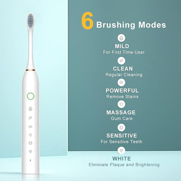 This electric toothbrush is IPX7 waterproof,can be safely rinsed with water. You can enjoy a fresh brushing experience in the Bath or shower with no worries.