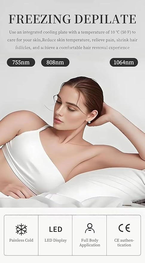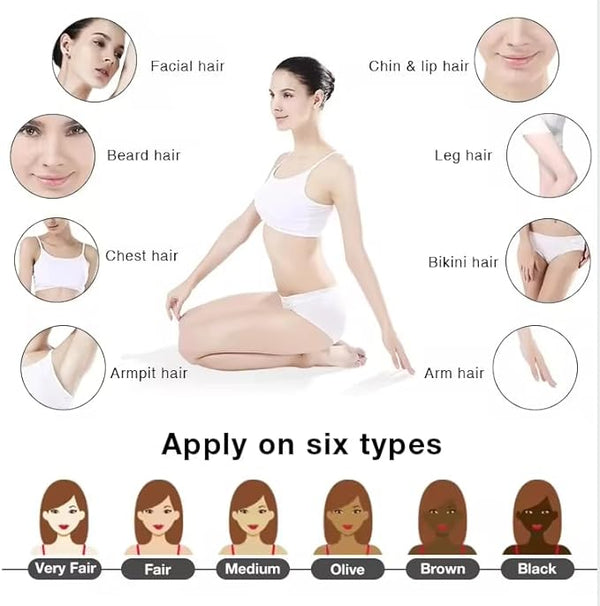 Professional Painless Hair Removal Device for Permanent Full-Body Hair Removal. Suitable for Face Arms Legs and The Bikini Area. LCD Display. Suitable for Both Men and Women.