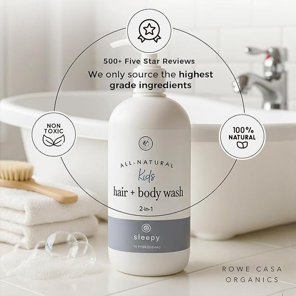 Rowe Casa Organics 2-in-1 Kids Hair & Body Wash with Therapeutic Essential Oils ? Fruity Kids Shampoo & Body Wash with Sweet, Bright & Uplifting Scent ? 16 Fl. Oz